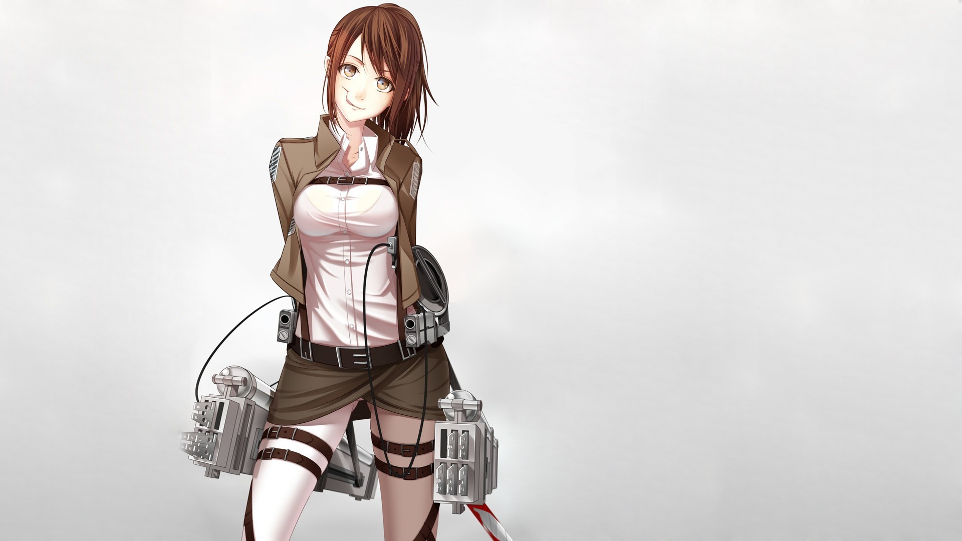 Description: A woman in a short skirt and jacket holding a gun and a light saber in her hand and a light saber in her other hand.