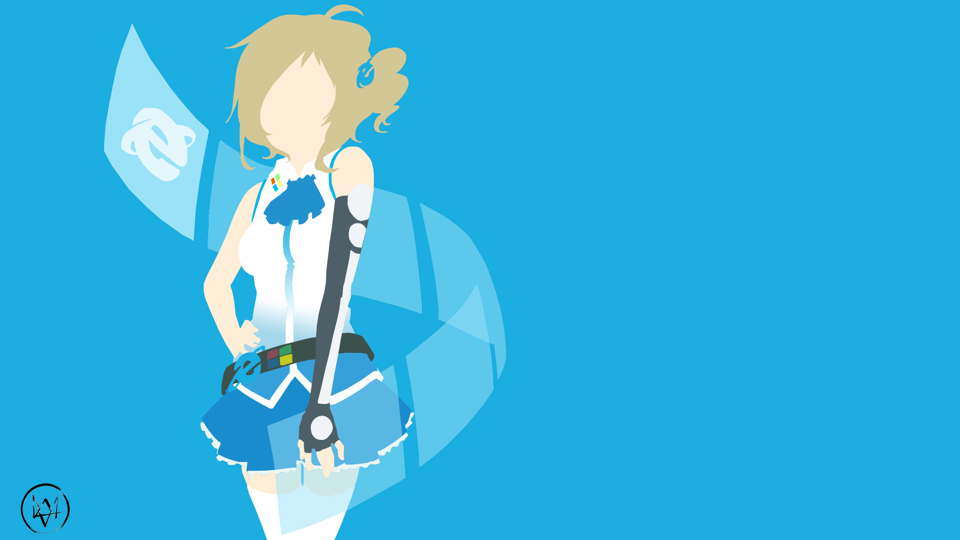 Description: A woman in a short skirt holding a pair of scissors in her hand and a blue background with a white and blue design.