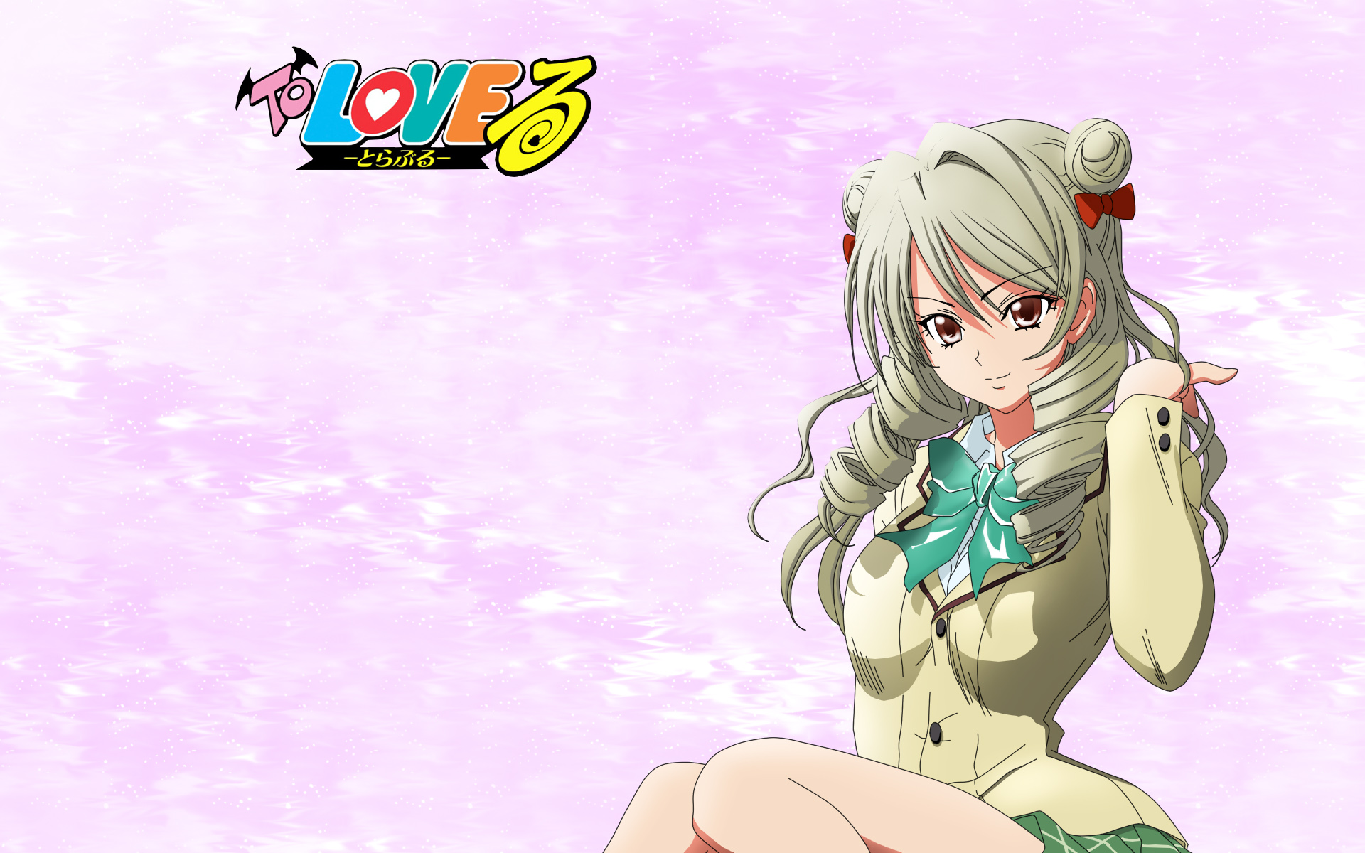 Description: A woman in a short skirt sitting on a stool with her hand on her hip and a pink background.