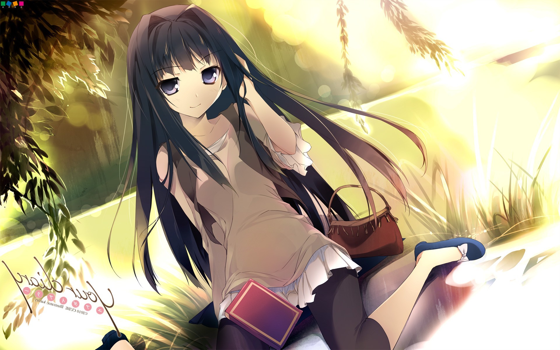 Description: A woman sitting on the ground with a book in her hand and a book in her hand.