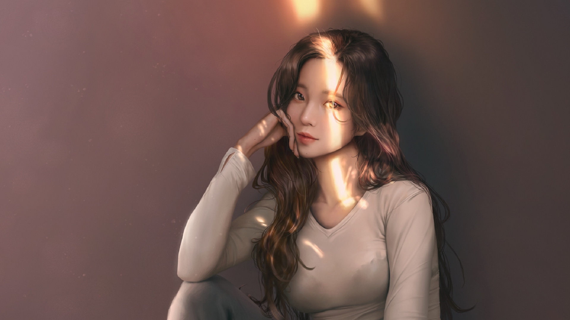 Description: A woman sitting on the ground with her hand on her head and her hand on her head.