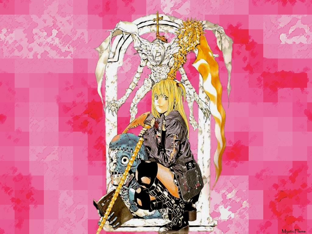 Description: A woman sitting on a chair with a sword in her hand and a demon on her back.