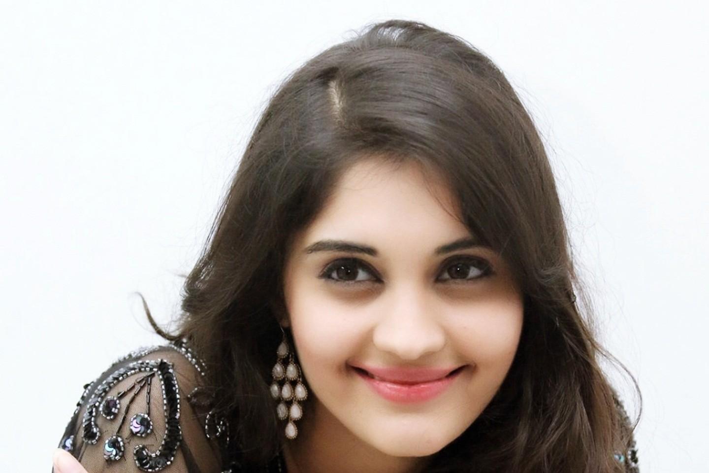 Description: A woman with a smile on her face and a dress on her arm and a necklace on her shoulder.