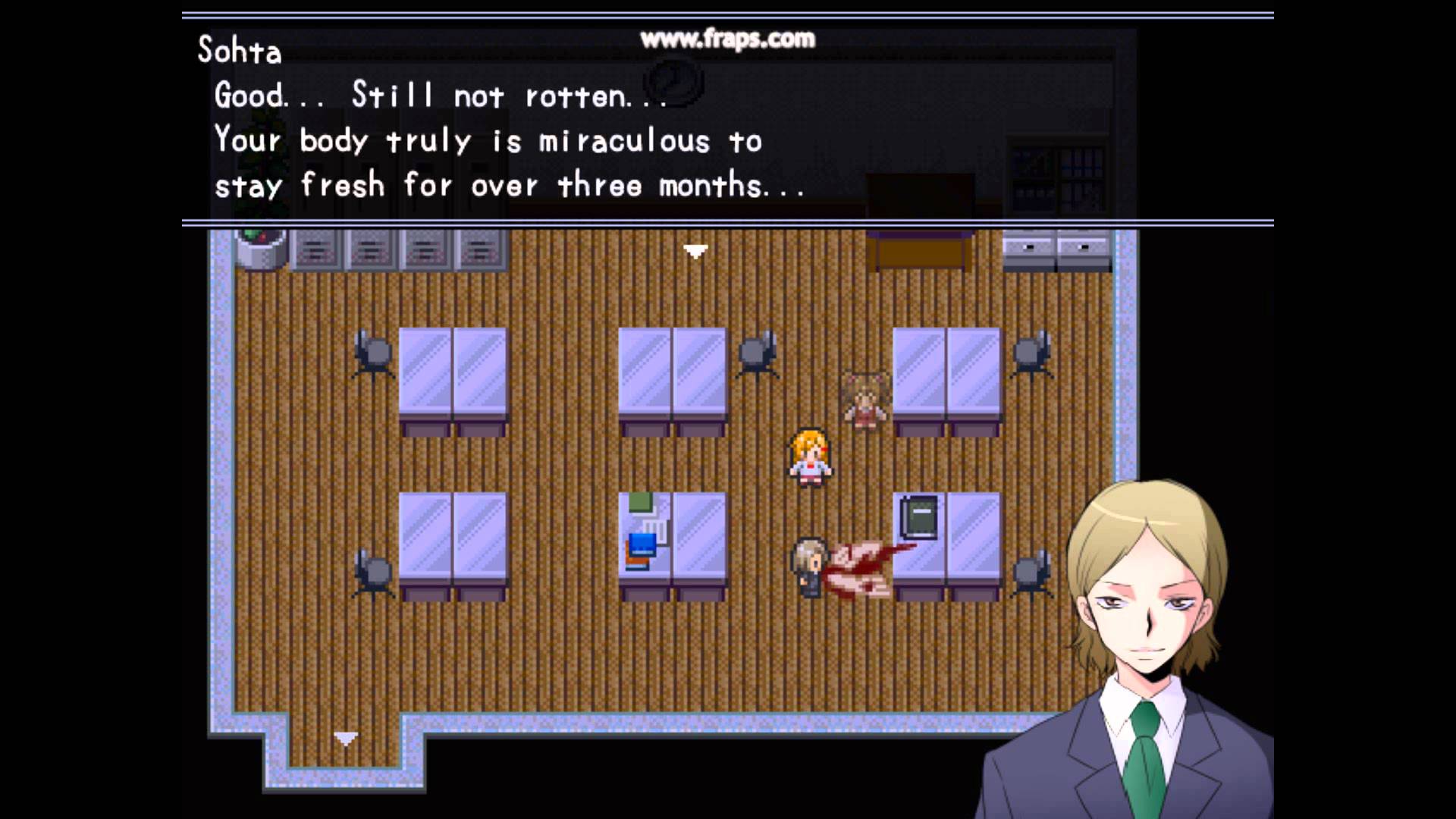 Description: A woman in a suit standing in front of a computer screen with a text message above her head that reads.