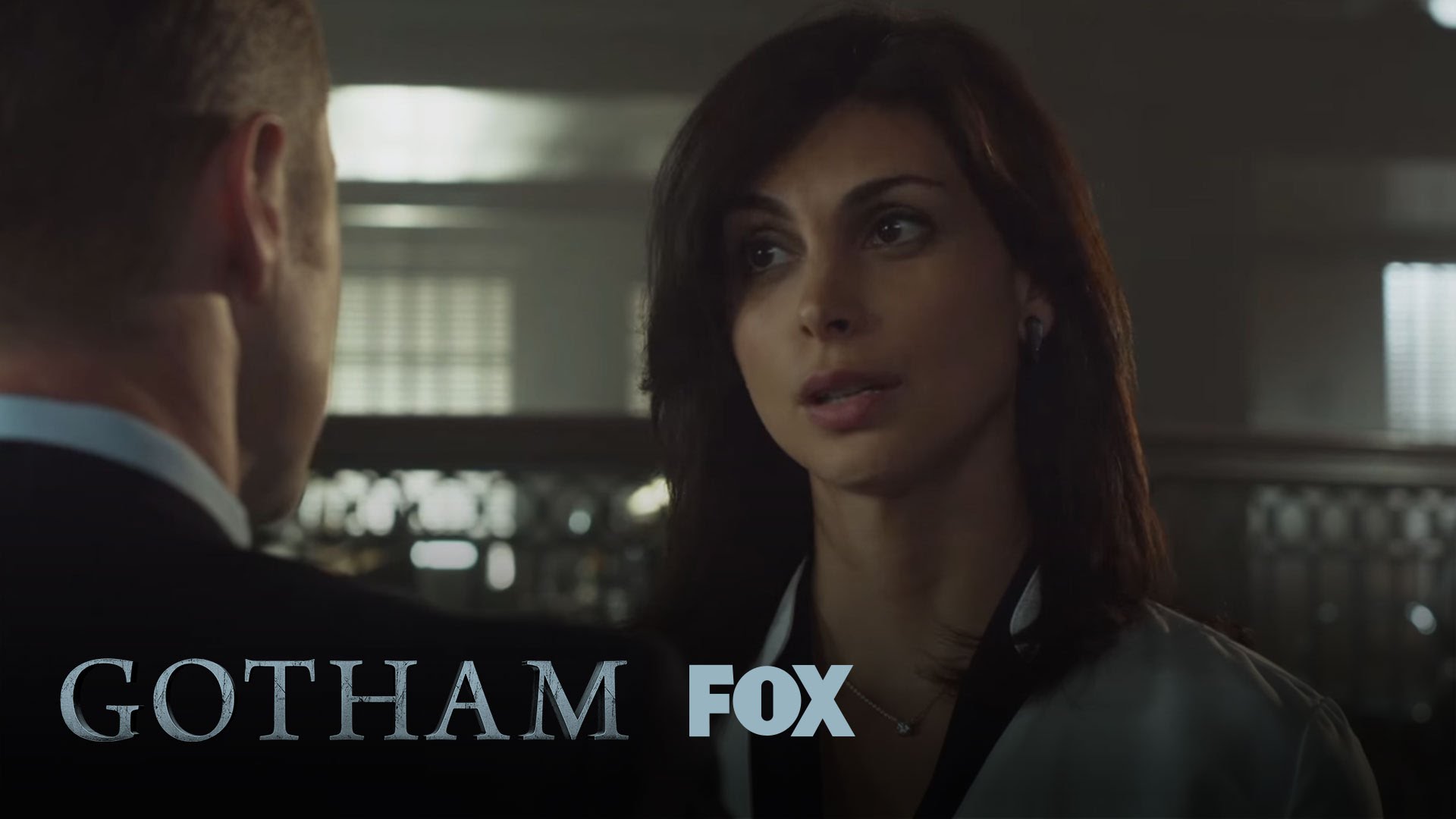 Description: A woman in a suit and tie standing next to a man in a suit and tie in a dark room.