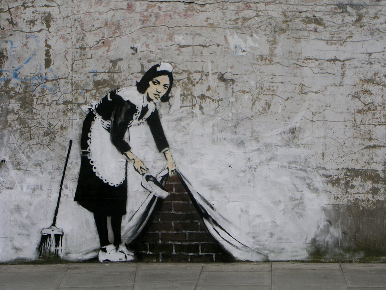Description: A painting of a woman sweeping the floor with a broom and a broom in her hand.