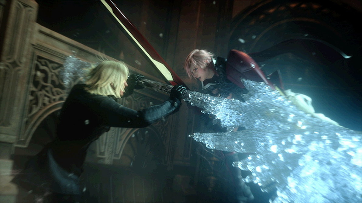 Description: A woman holding a sword in a dark room with a man standing next to her and another woman standing behind her.