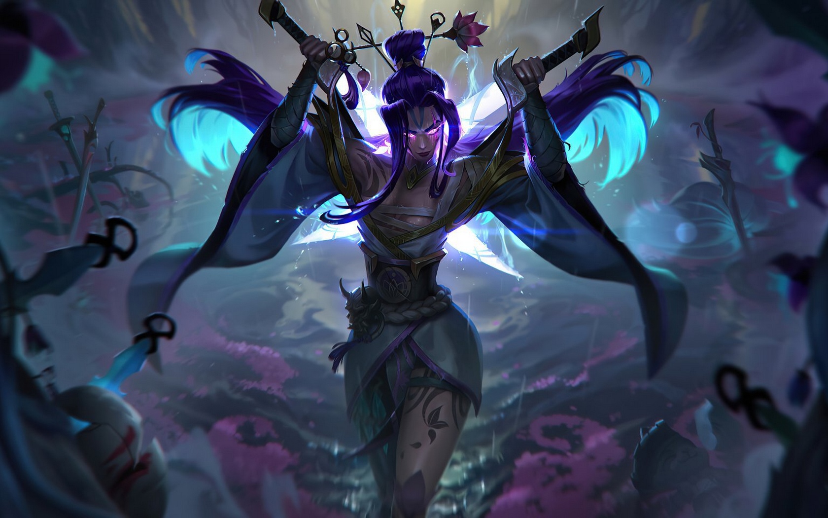 Description: A woman with a sword and a demon like outfit on.