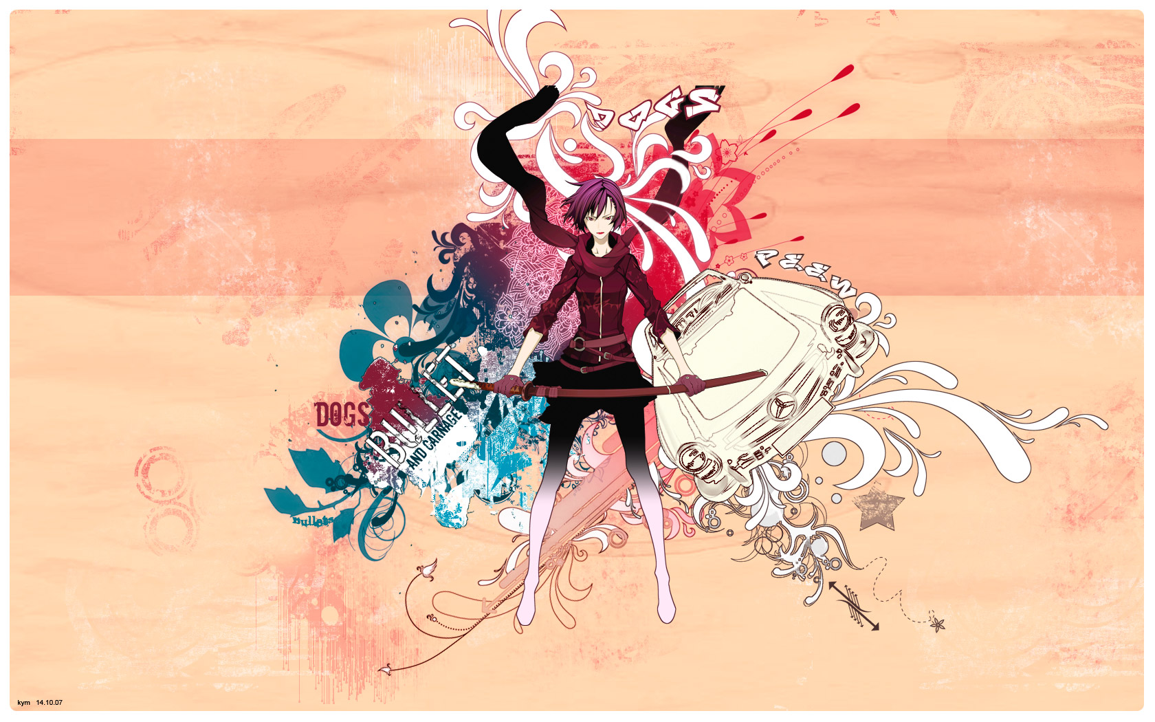 Description: A woman with a sword and a dress on a pink background with swirls and stars and a splash of paint.