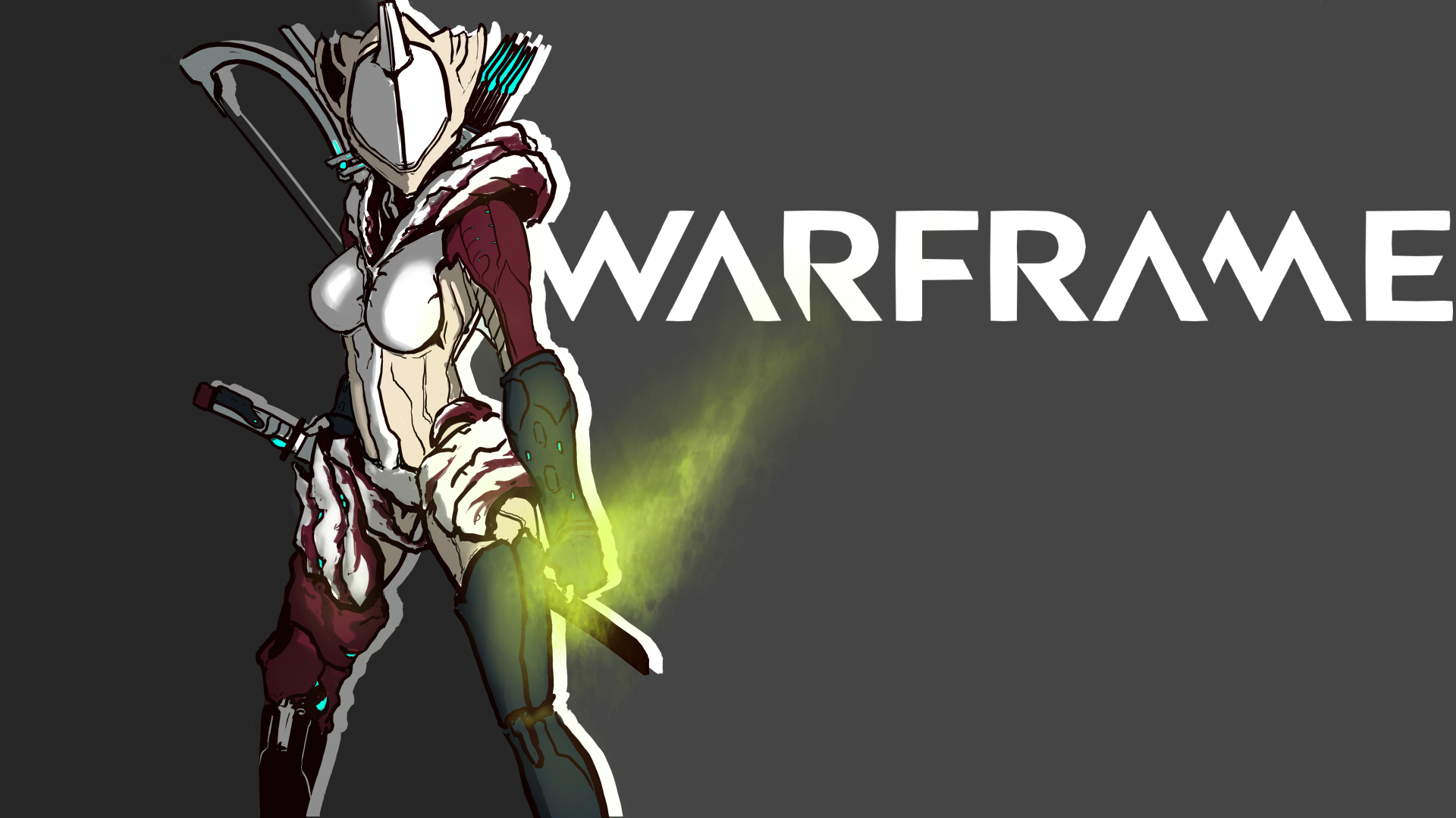 Description: A stylized image of a woman with a sword and a text that reads warframes on it.