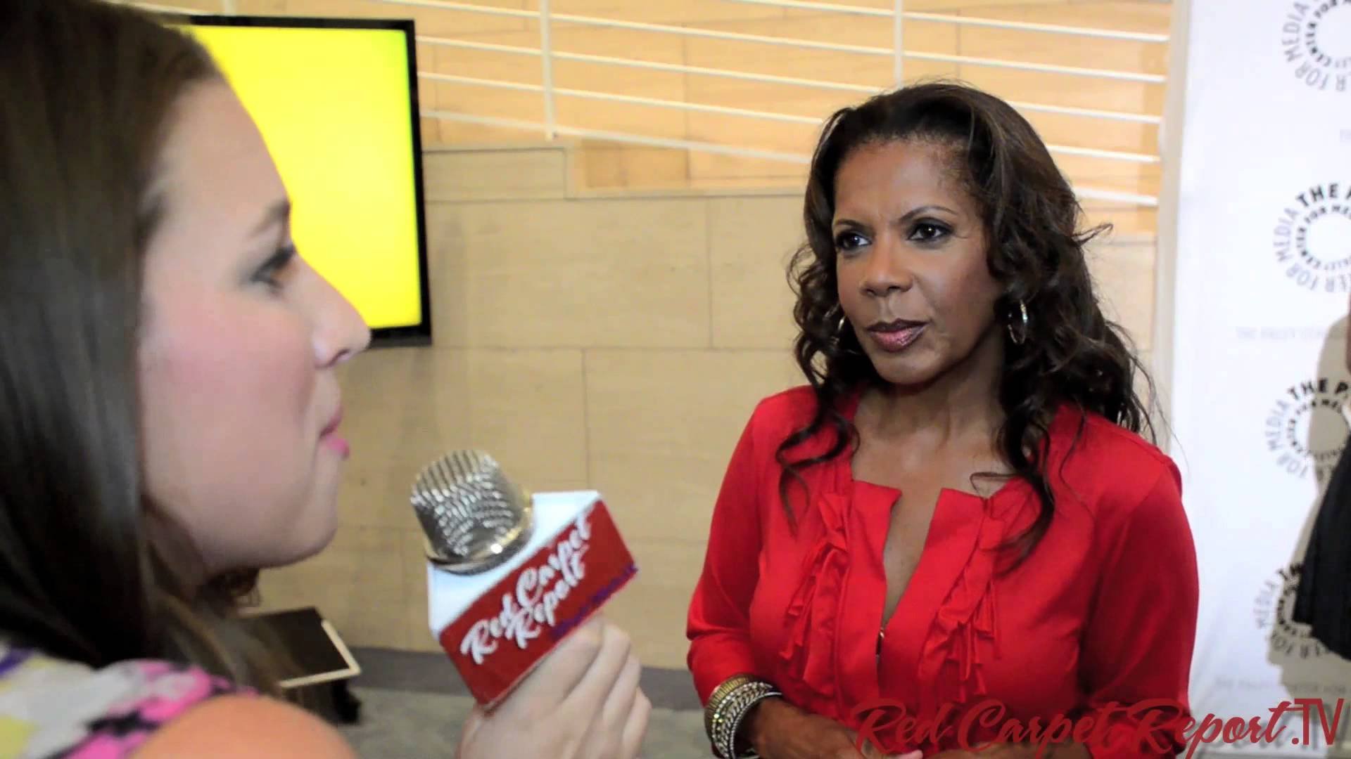 Description: A woman talking to a reporter in a red top and a microphone in her hand and a woman in a red top.