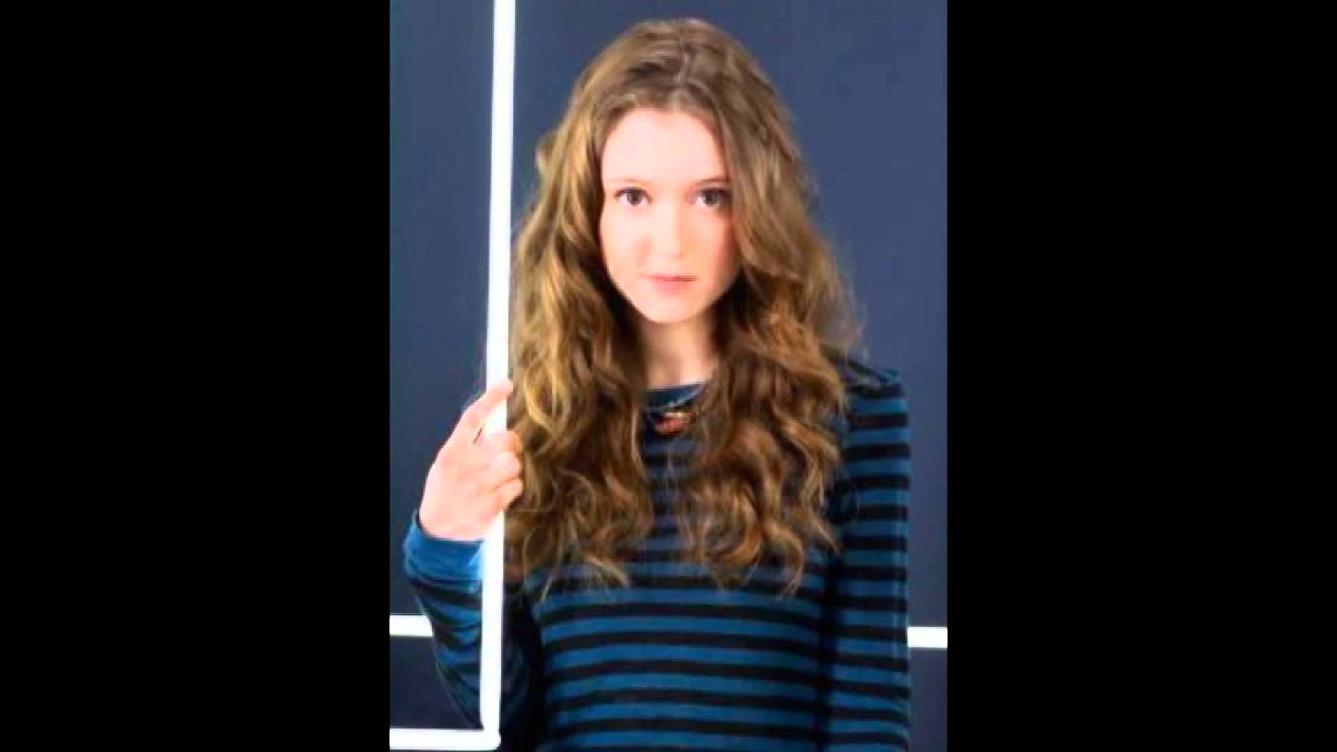 Description: A woman with long hair is giving a thumbs up sign in front of a blue wall and a blue and white striped shirt.