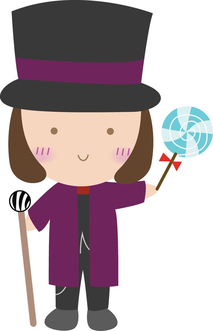 Description: A woman in a top hat holding a lollipop and a stick with a fan on it's side.