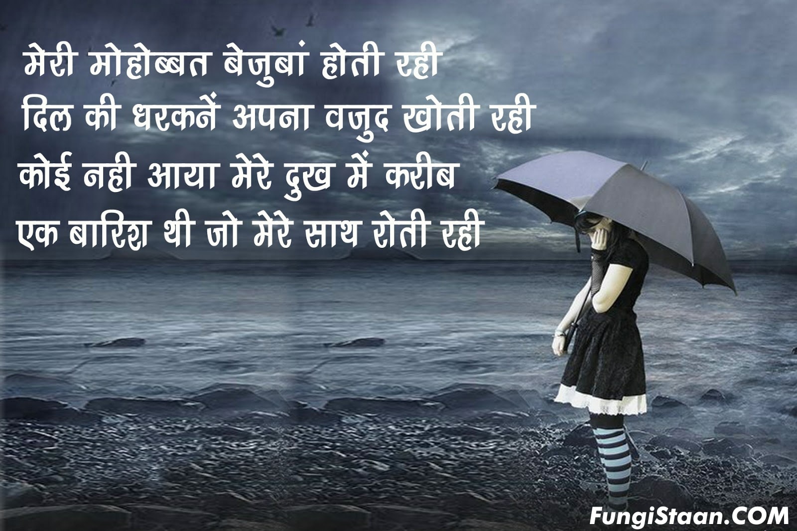 Description: A woman holding an umbrella standing on a beach with a storm in the background and a quote written in english.
