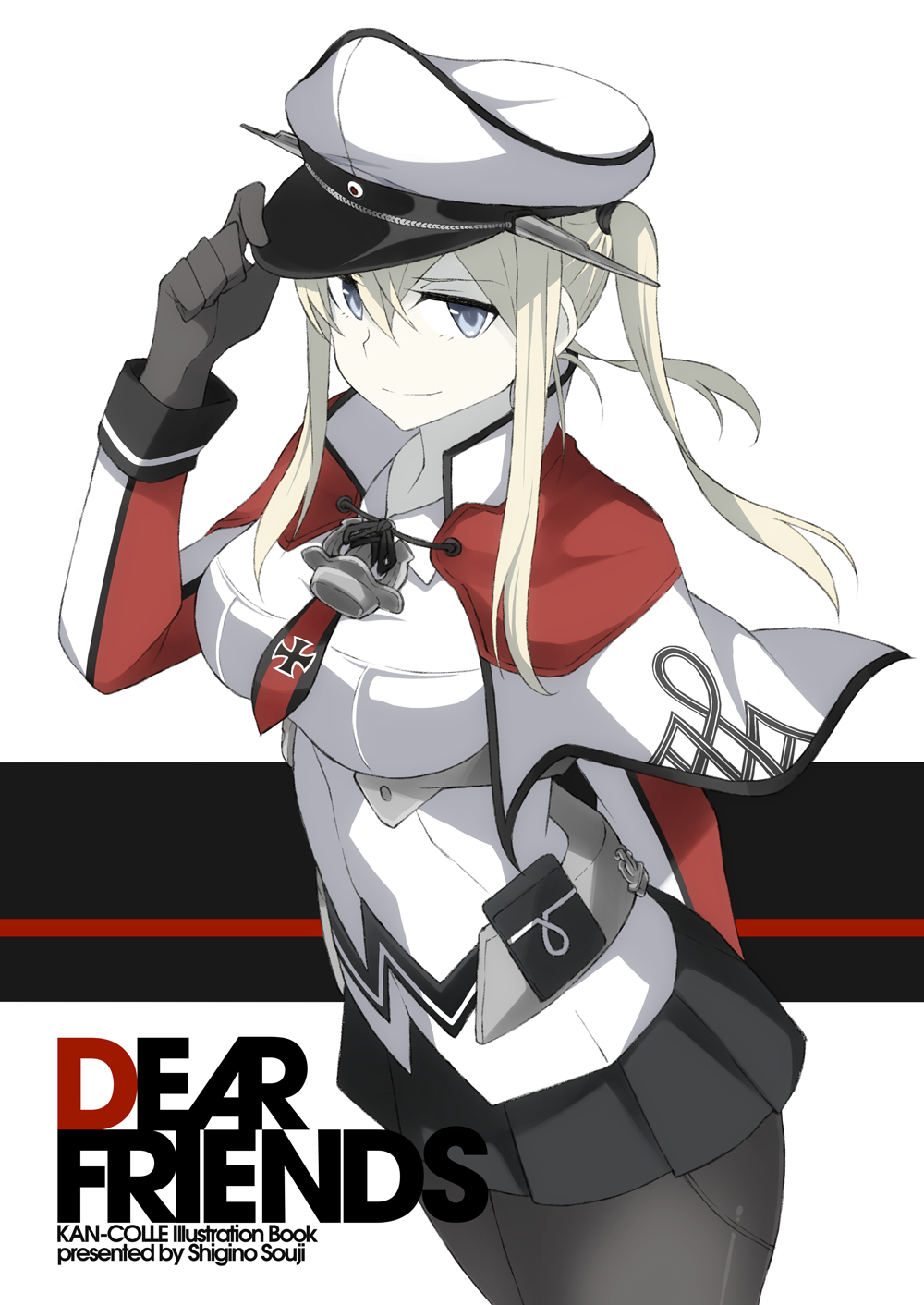 Description: A woman in a uniform holding a gun and a hat on her head with the words dear friends written on it.