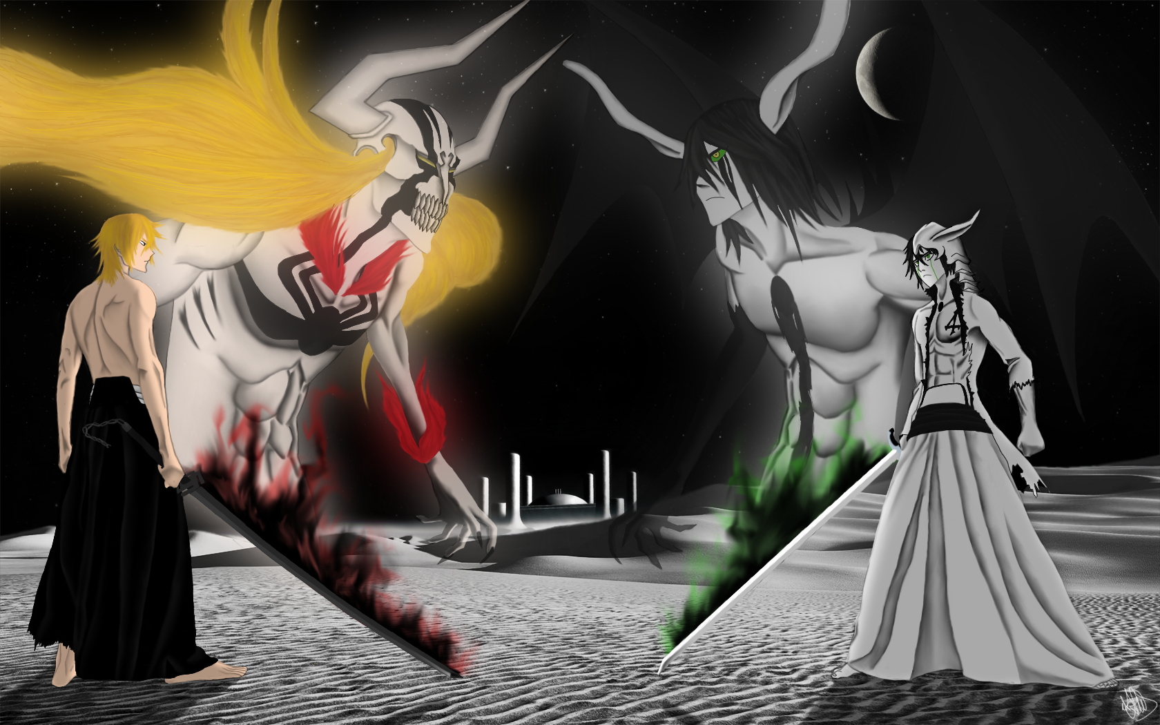 Description: A woman in a white dress standing next to a man in a black dress and a white horse in a desert.