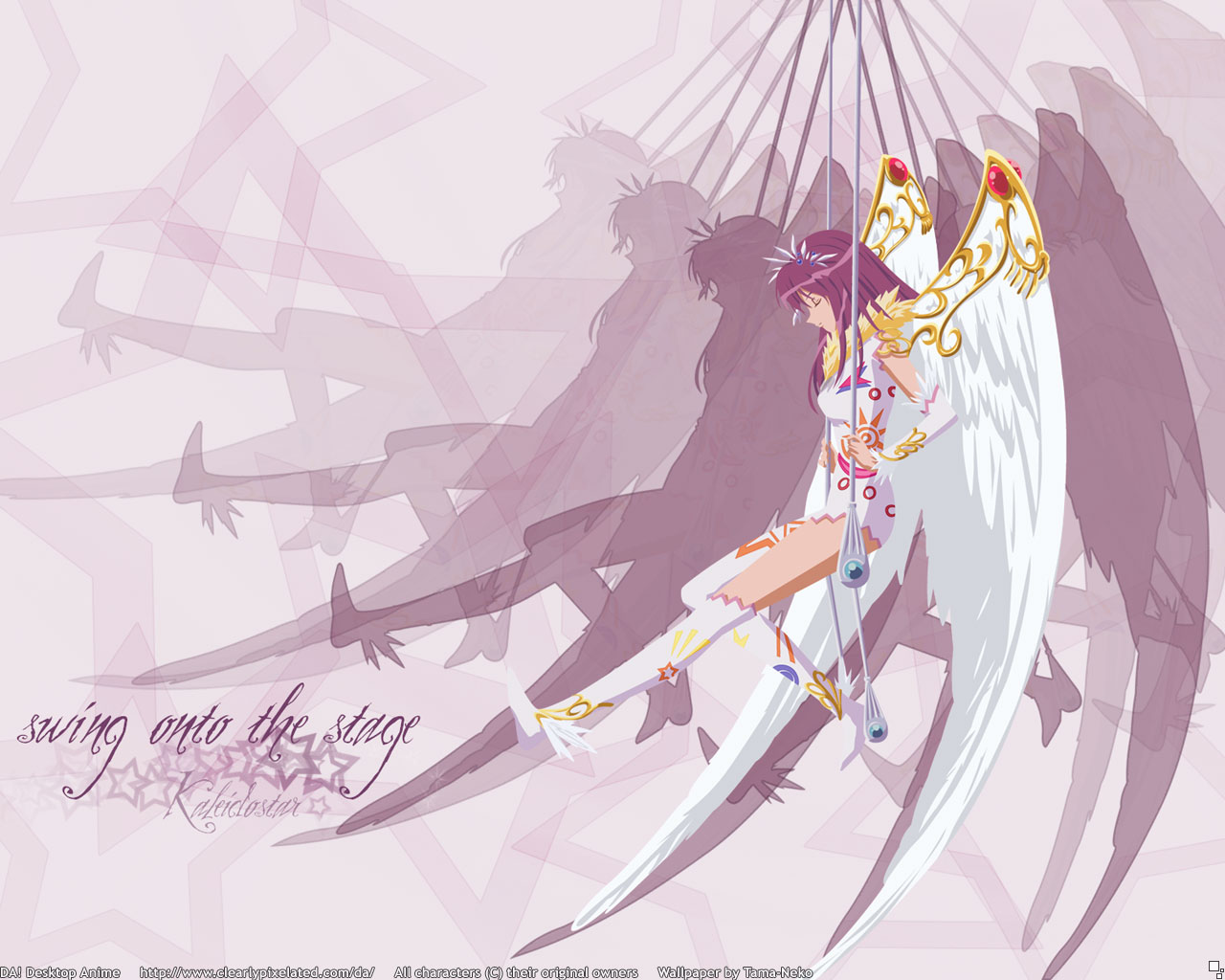Description: A drawing of a woman with wings holding a sword and a sword in her hand with a bird on it.