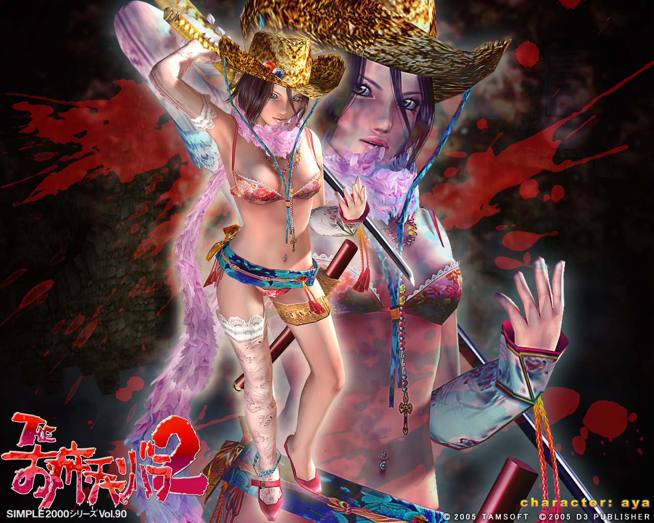 Description: A painting of two women dressed in costumes and hats with a knife and a knife in their hands.