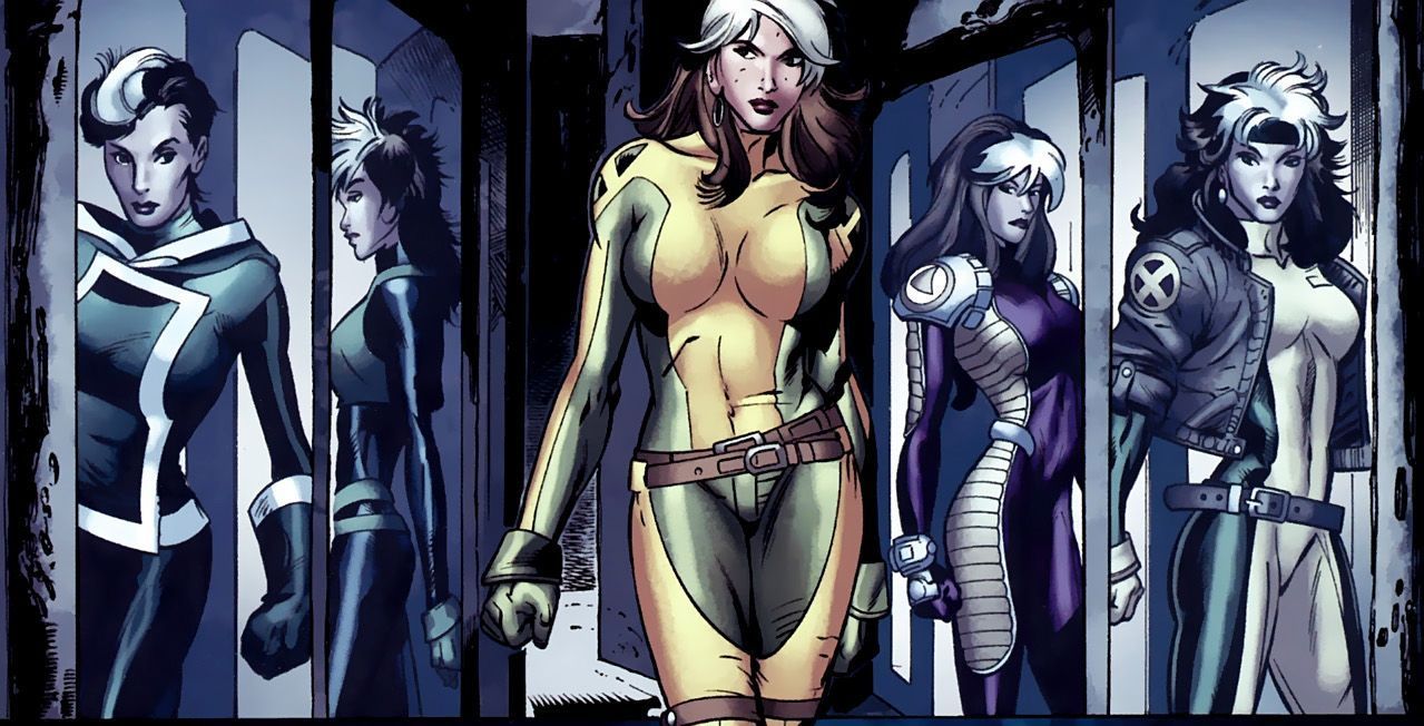 Description: A group of women in costumes standing in a line in a jail cell area with a man in the background.