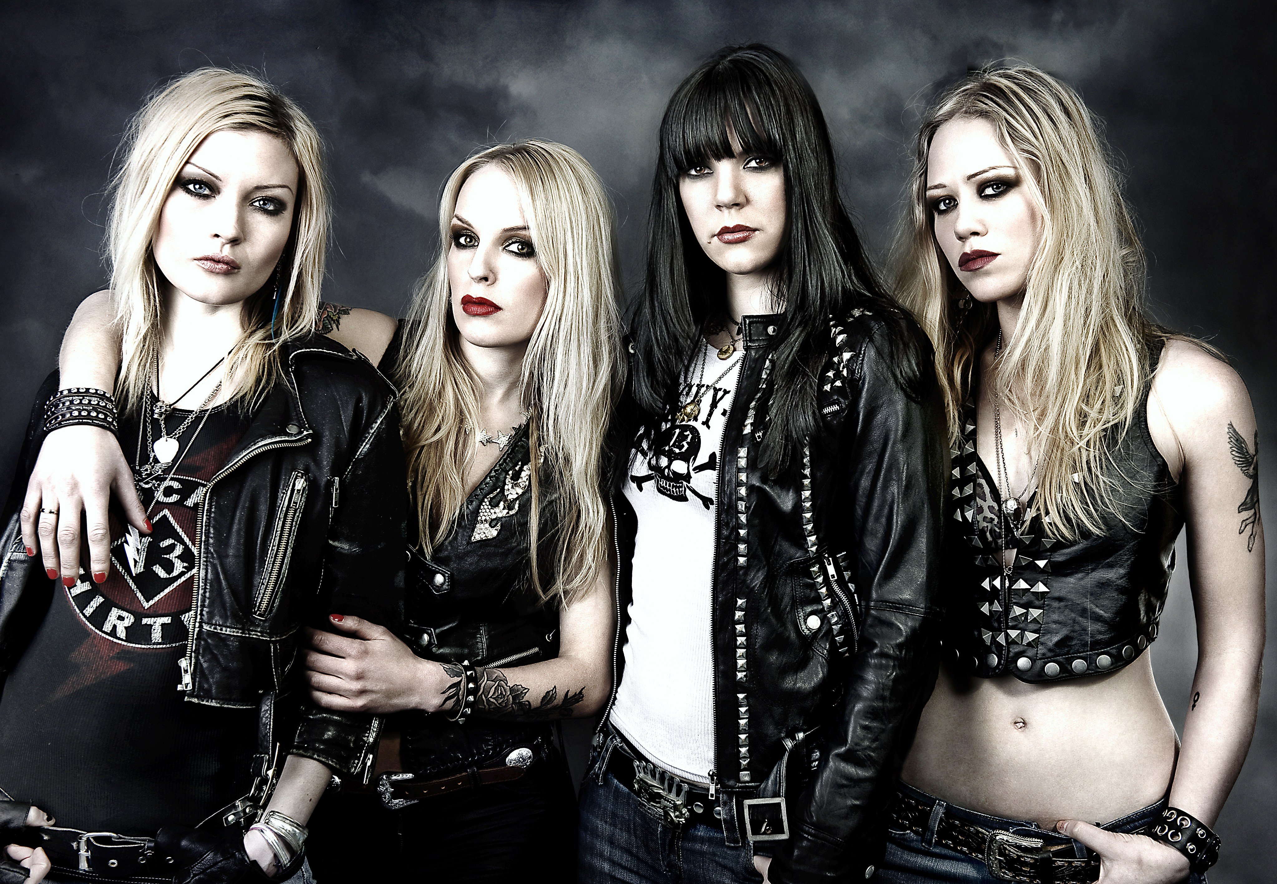 Description: A group of women standing next to each other in leather jackets and jeans.