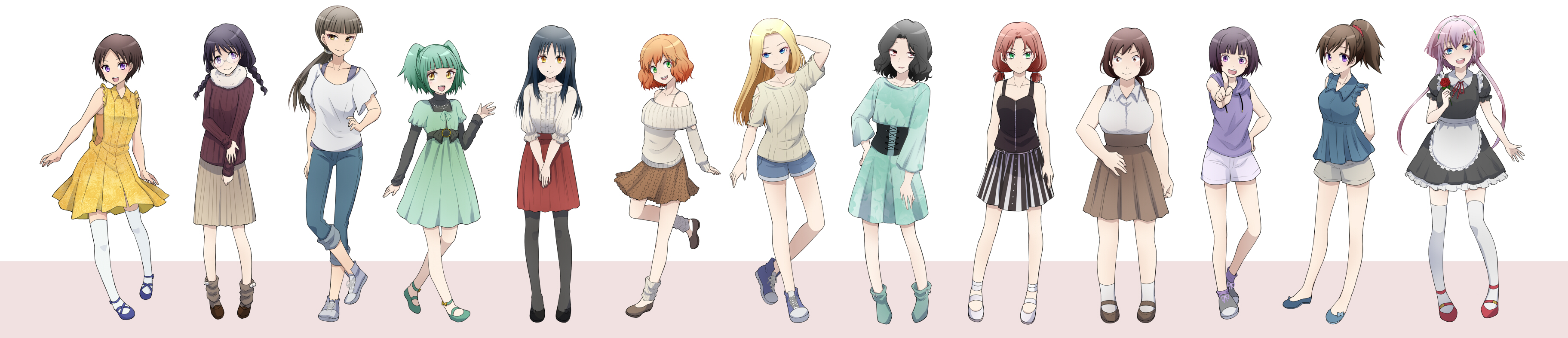 Description: A group of women standing next to each other in different outfits and hair styles.