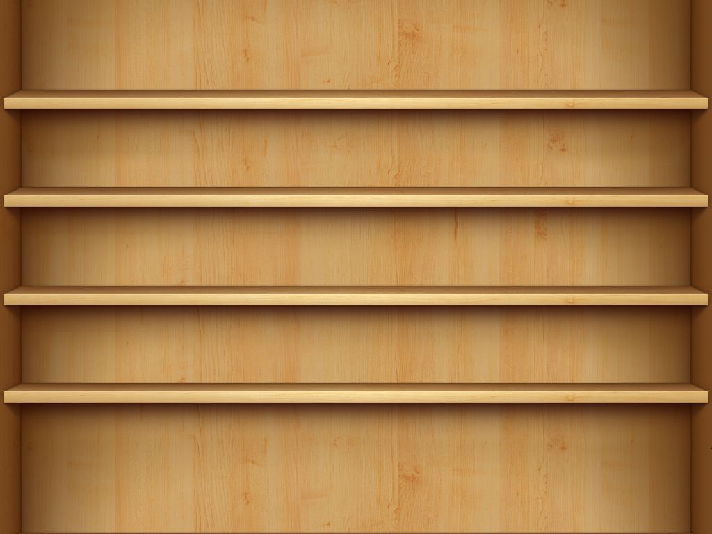 Description: A wooden shelf with three shelves on each side of it and a light brown floor in front of it.