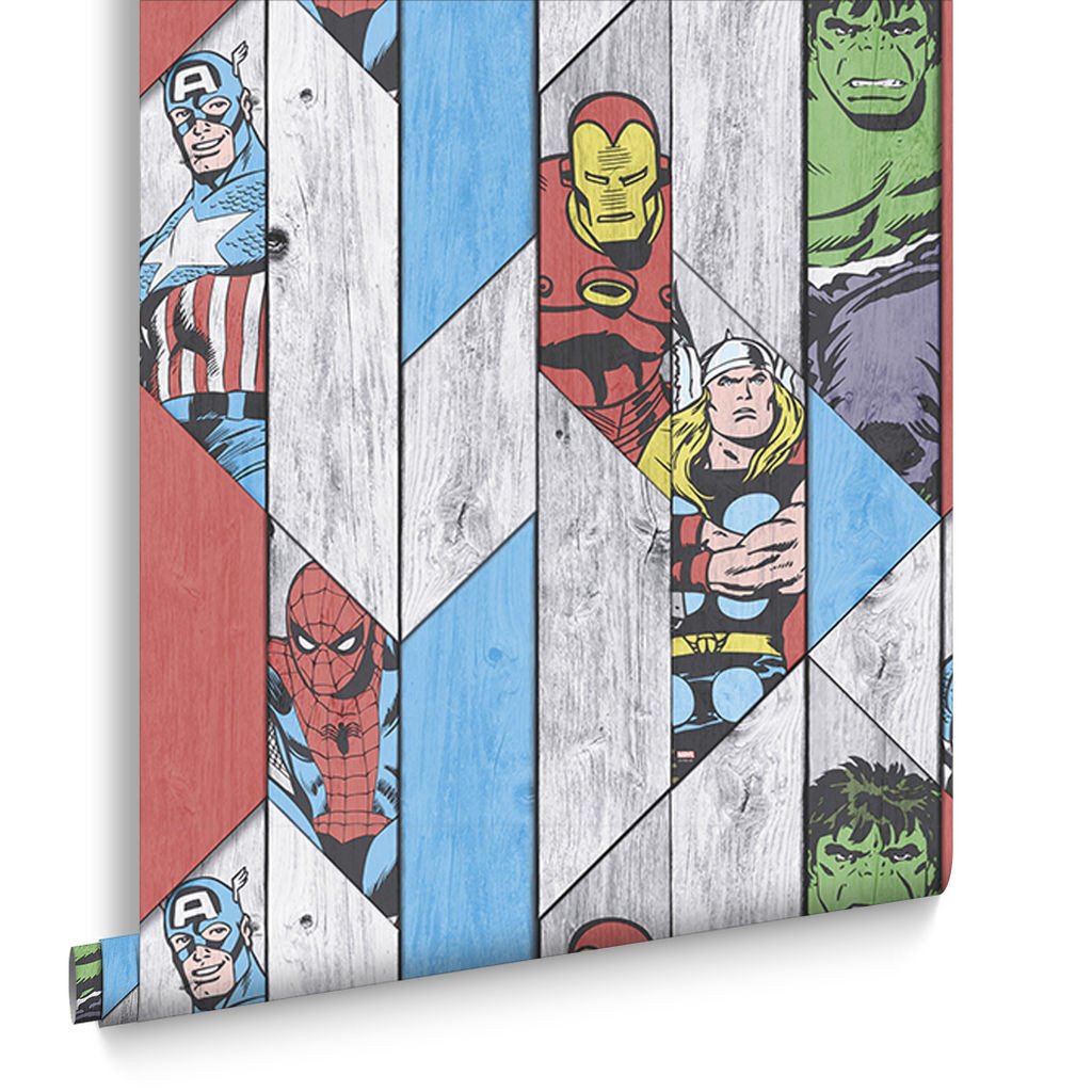 Description: A wooden wall with avengers and captain america on it.