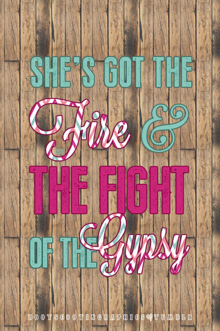 Description: A wooden wall with a quote on it that says she's got the fire and the fight of the gypsy.
