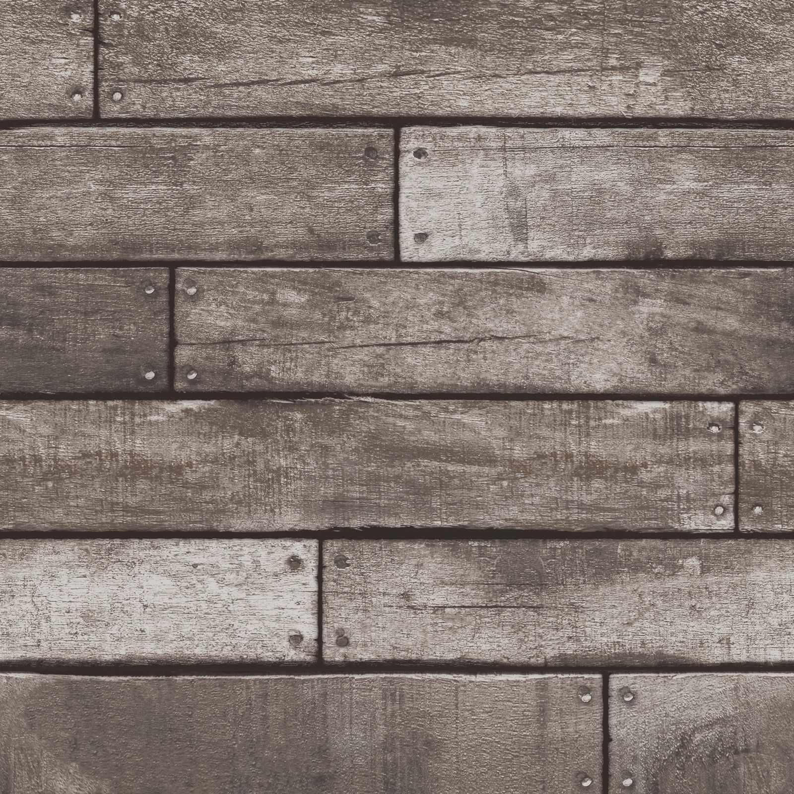 Description: A wooden wall with rivets and nails on it's sides and a clock on the wall.