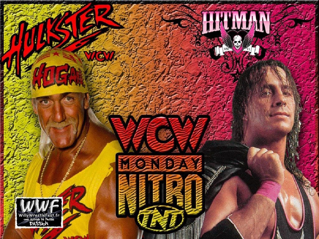 Description: A picture of two men in wrestling gear and one is pointing at the camera with a fist in his hand.
