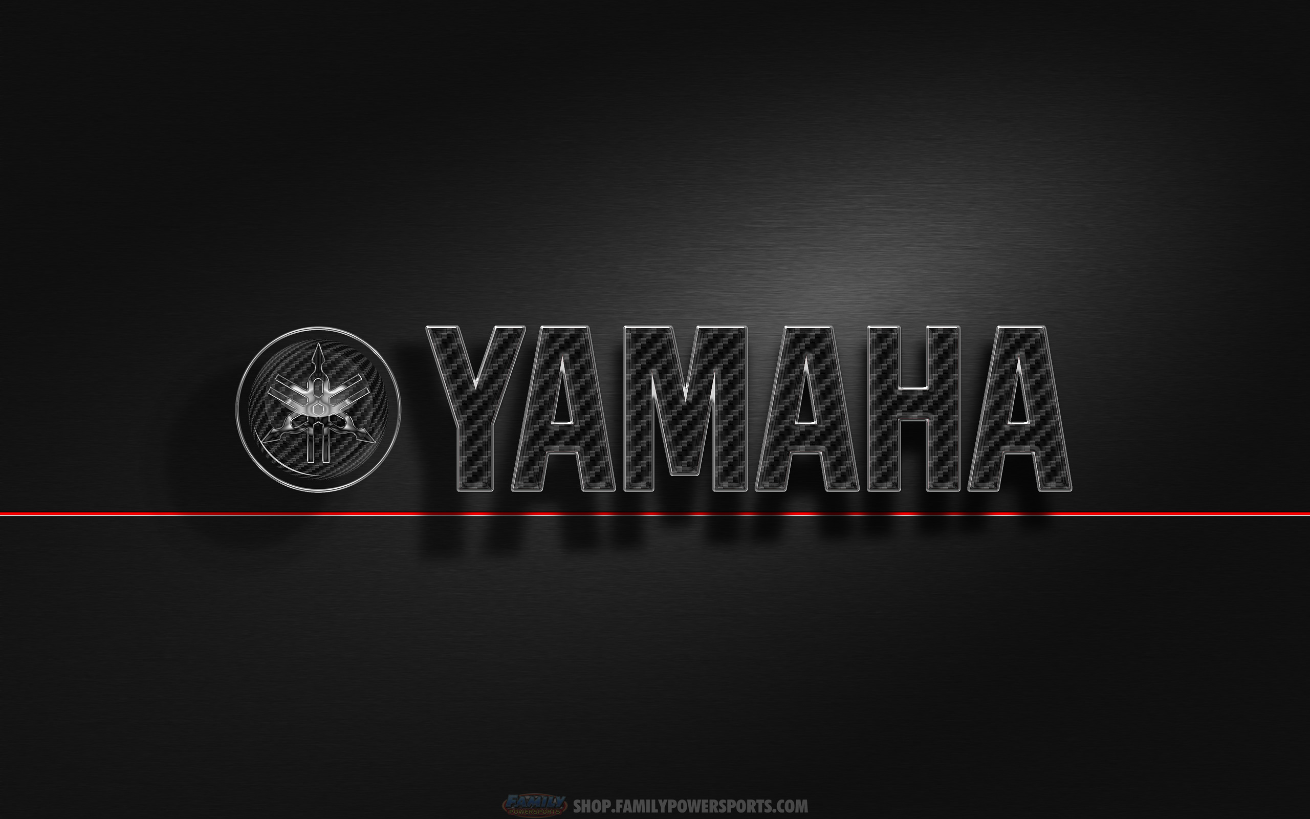 Description: The word yamaha in 3d letters on a black background with a red stripe around it and a black and white background with a red stripe.
