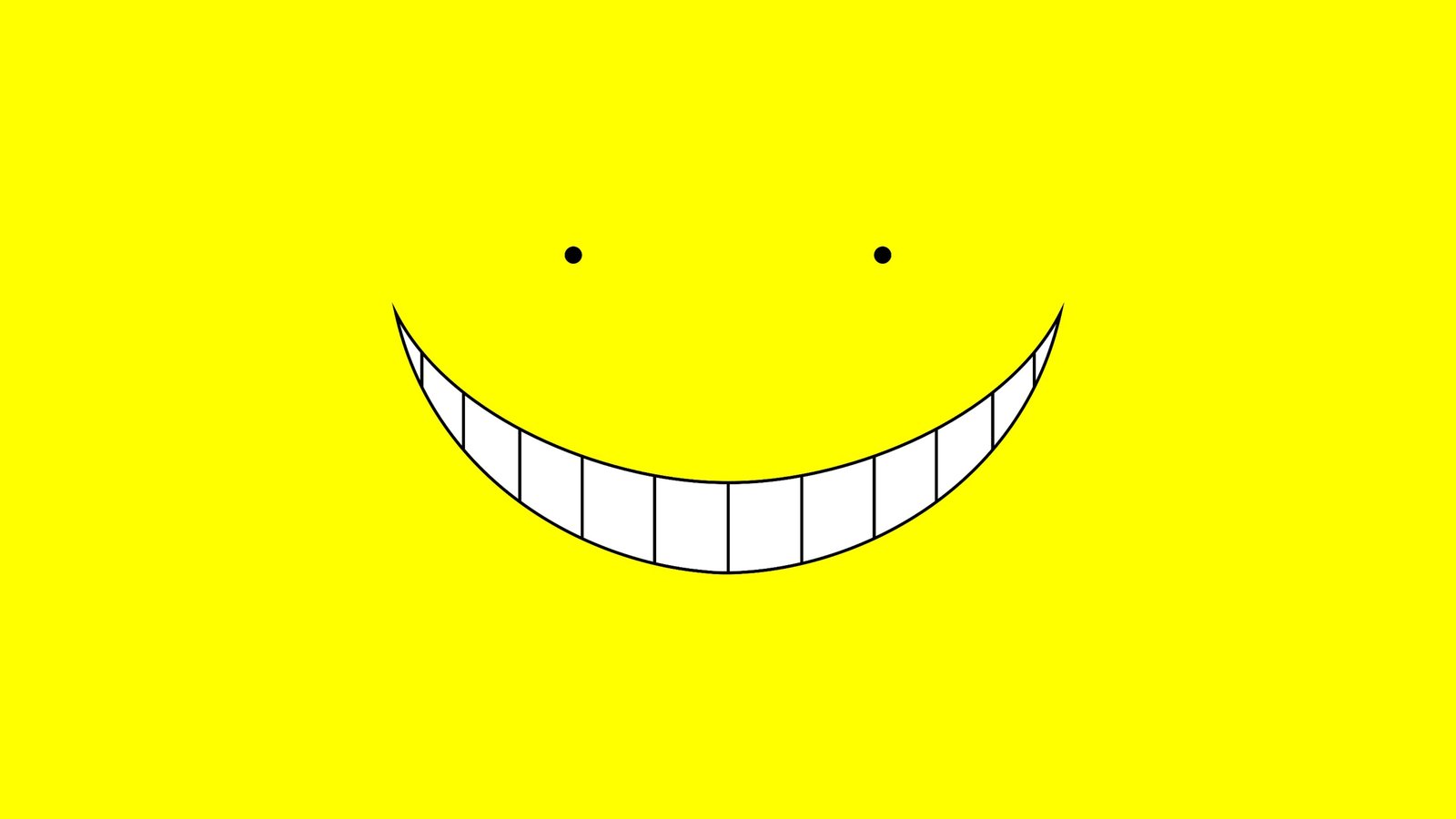 Description: A yellow background with a smiling face drawn on it's side and a black outline of the face.