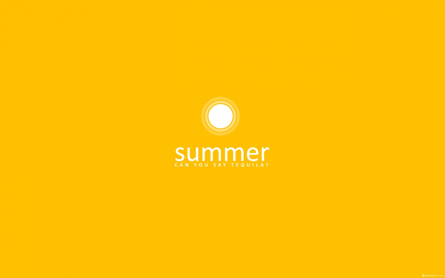 Description: A yellow background with a white circle and the words summer on it in white letters on the bottom of the image.