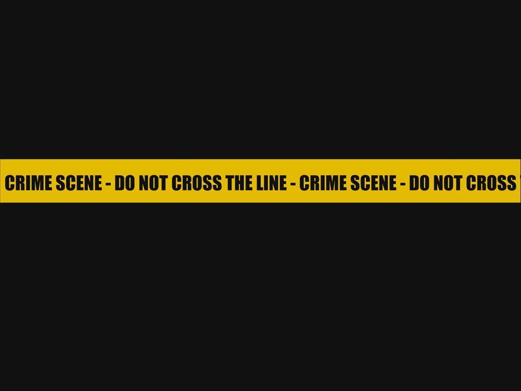 Description: A yellow and black line with words on it that says crime scene do not cross the line - crime - scene do not cross.