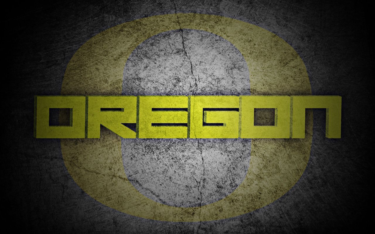 Description: A yellow and black logo with the word oregon on it's side in a grungy background.
