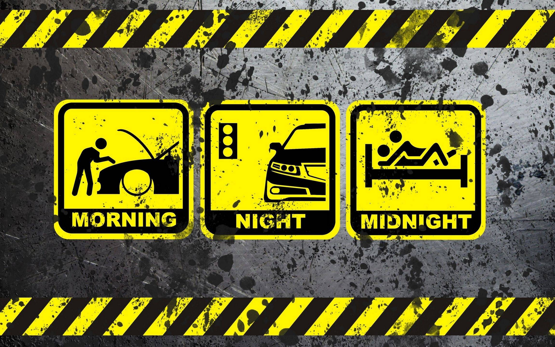 Description: A yellow and black sign that says morning.