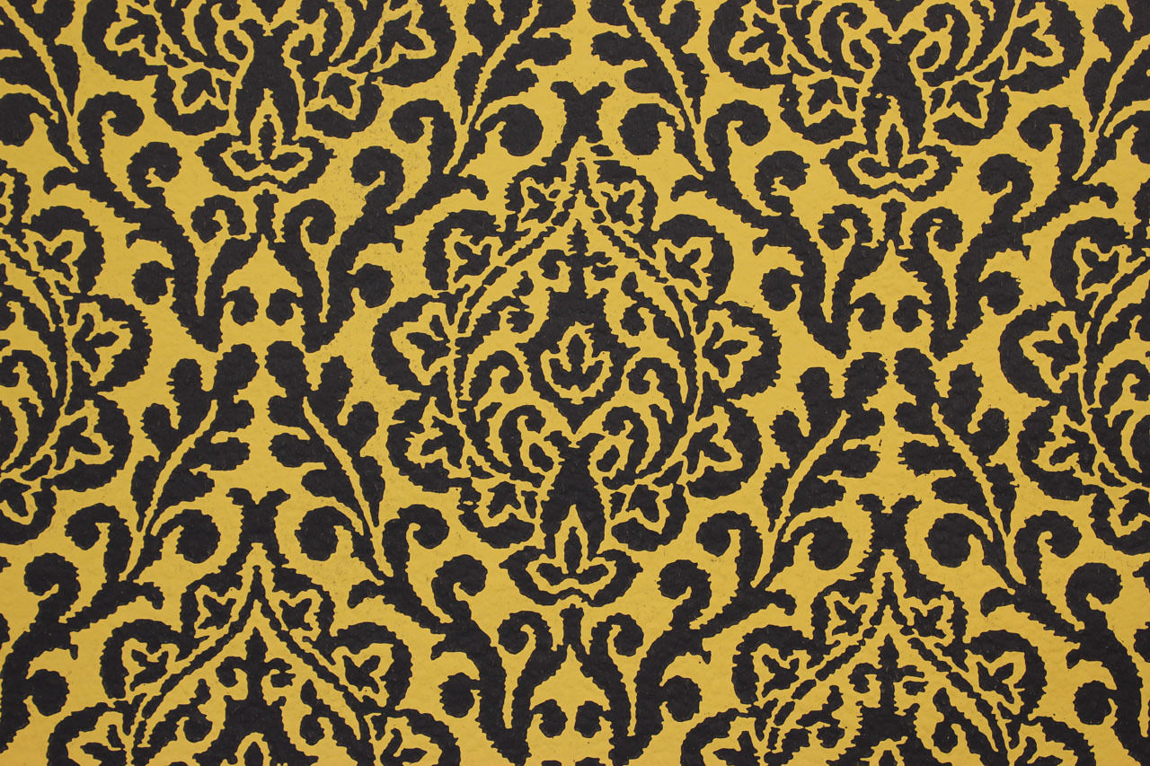 Description: A yellow and black wallpaper with a pattern of black and yellow flowers on it's side and a black and white background.