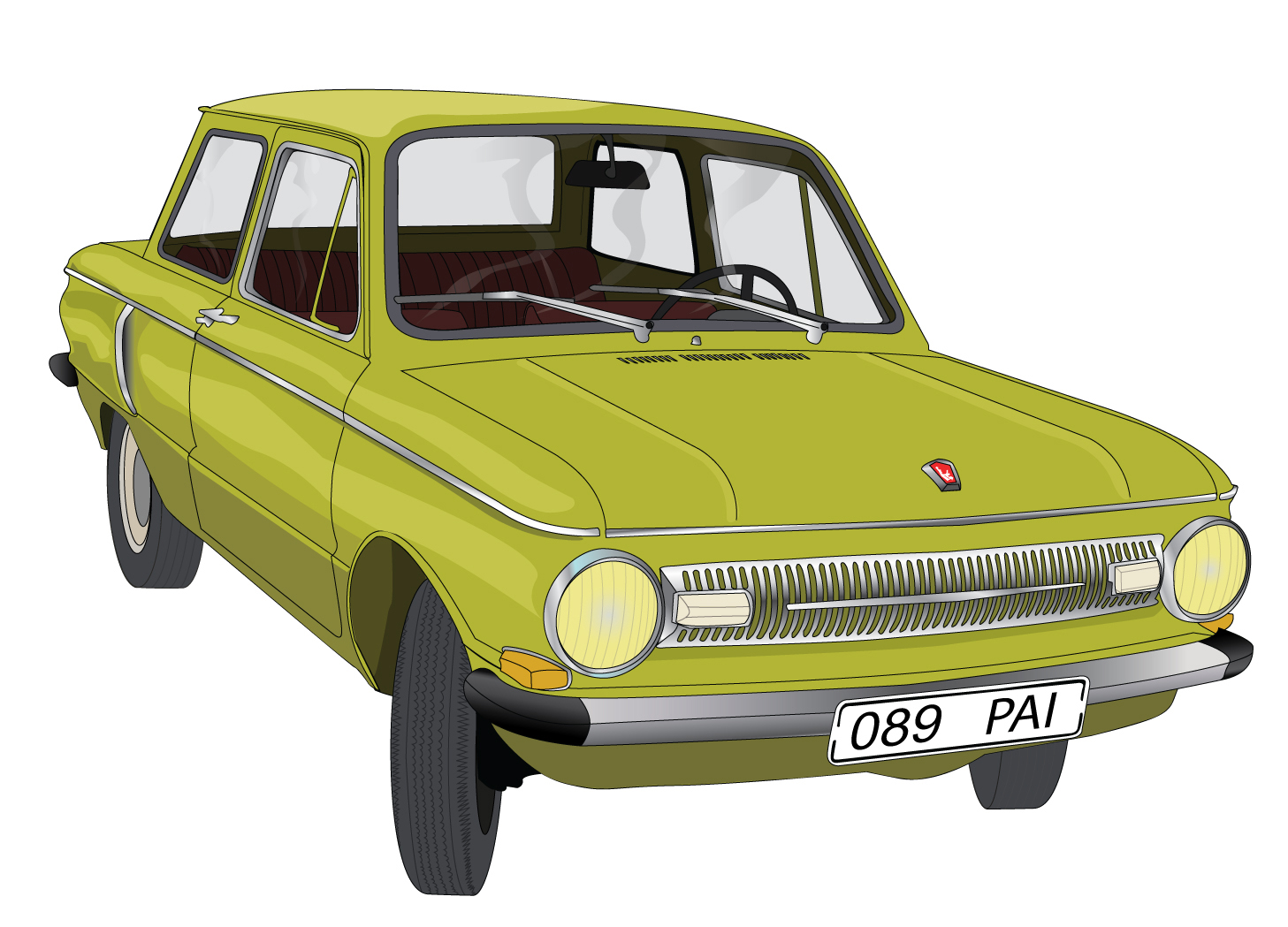 Description: A yellow car with a brown roof and a white background is shown in this drawing style image.
