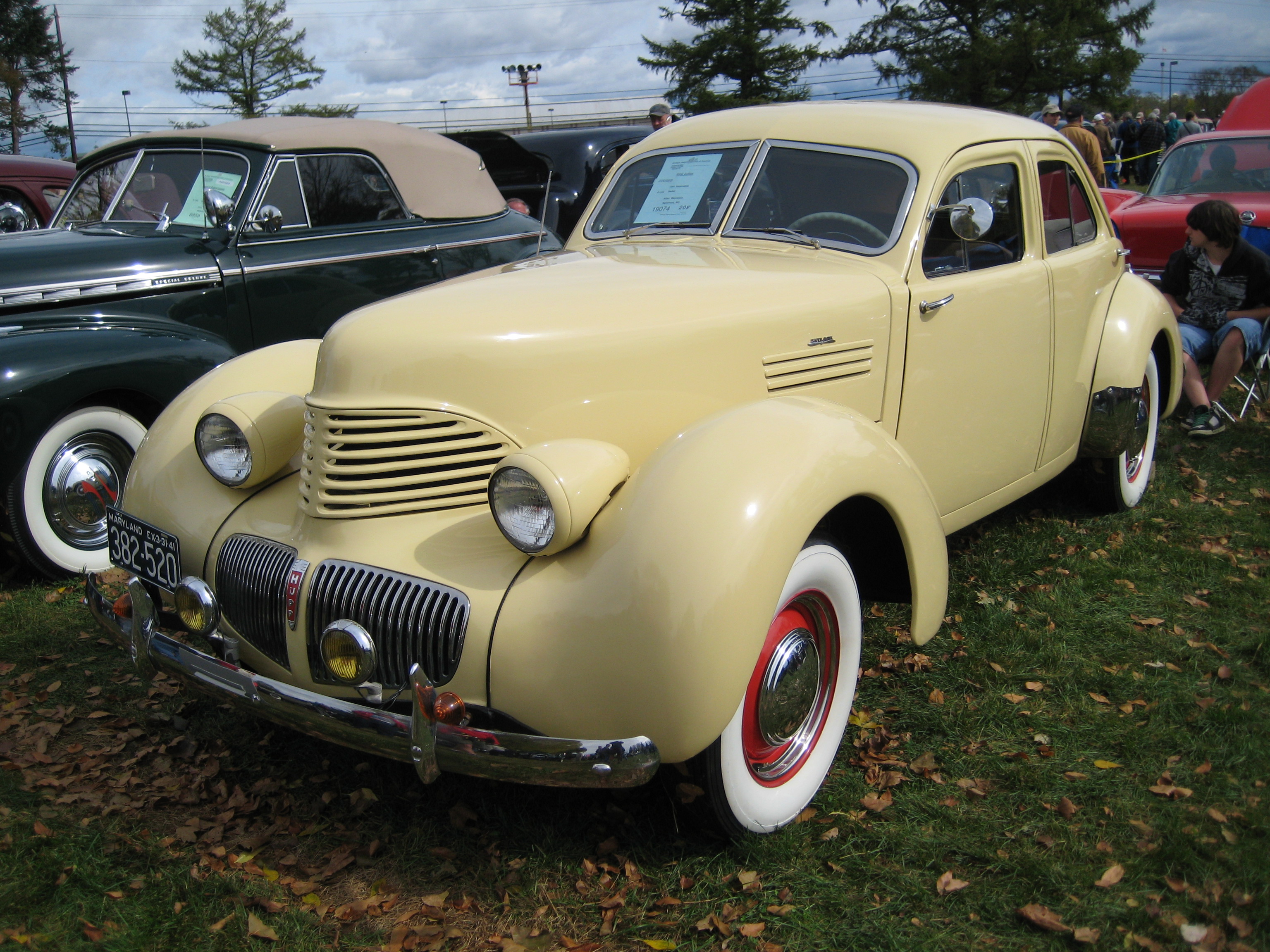 Description: A yellow car parked in a field next to other cars in a field with people looking at it and a woman sitting on the ground.