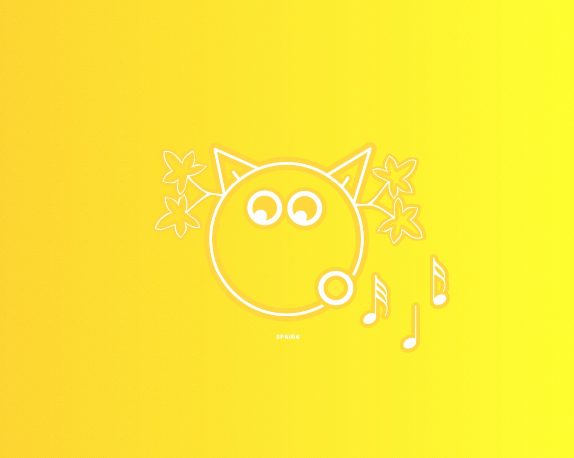 Description: A yellow background with a cat and music notes on it's ears and nose.