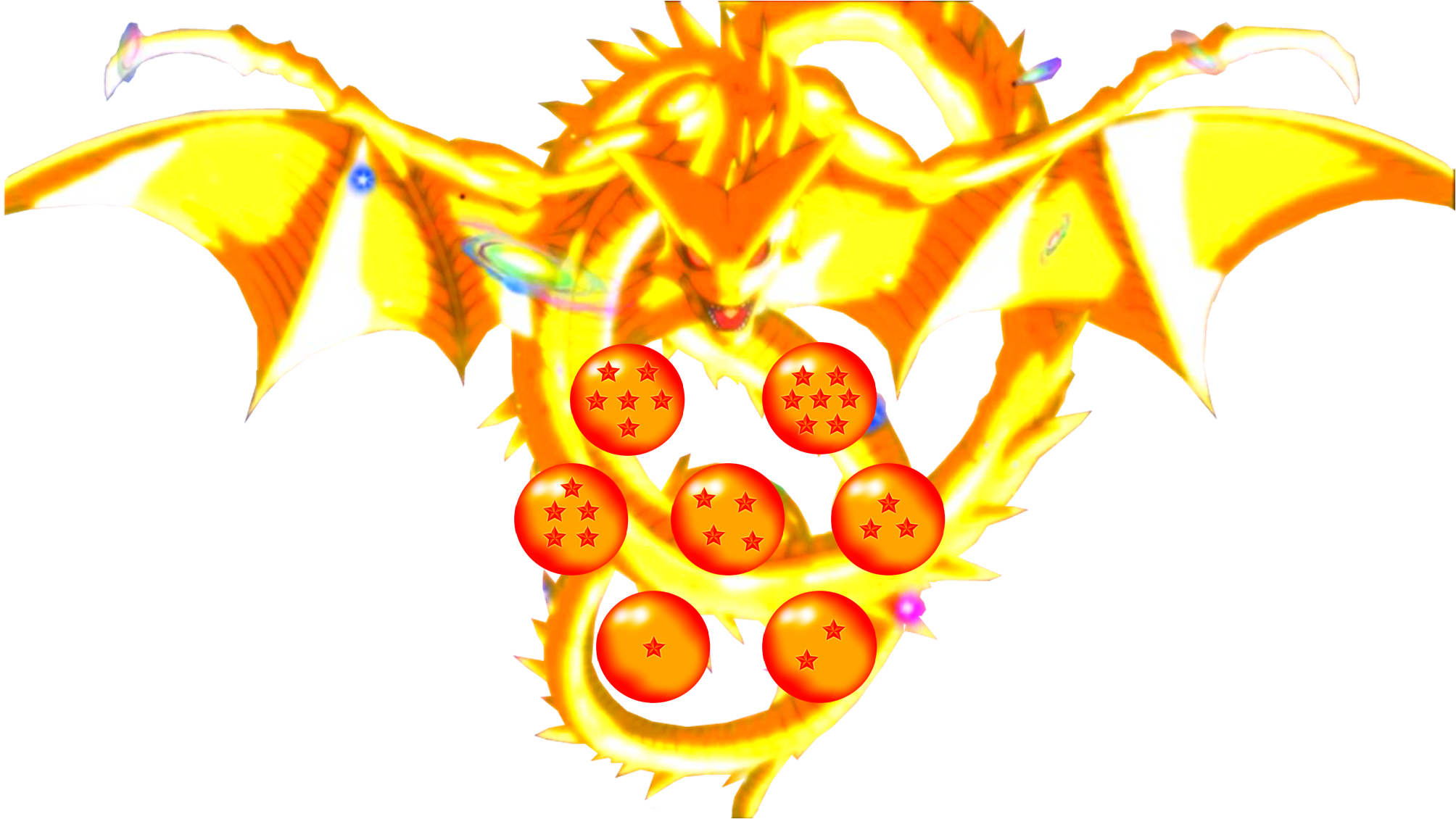 Description: A yellow dragon with orange balls in its claws and wings.