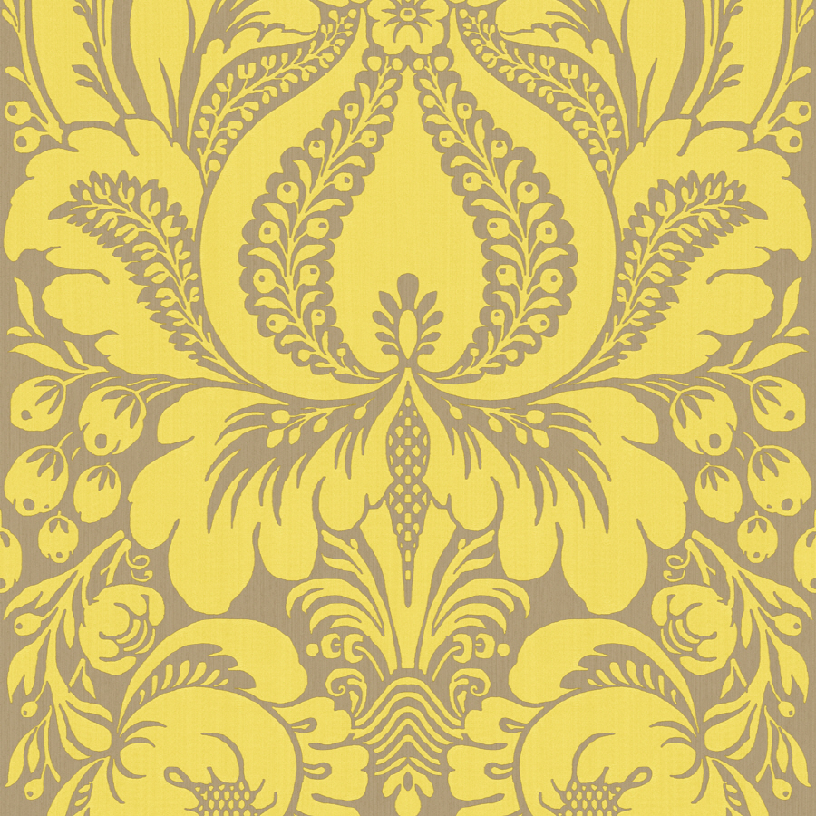Description: A yellow and gray wallpaper with a floral design on it's side.