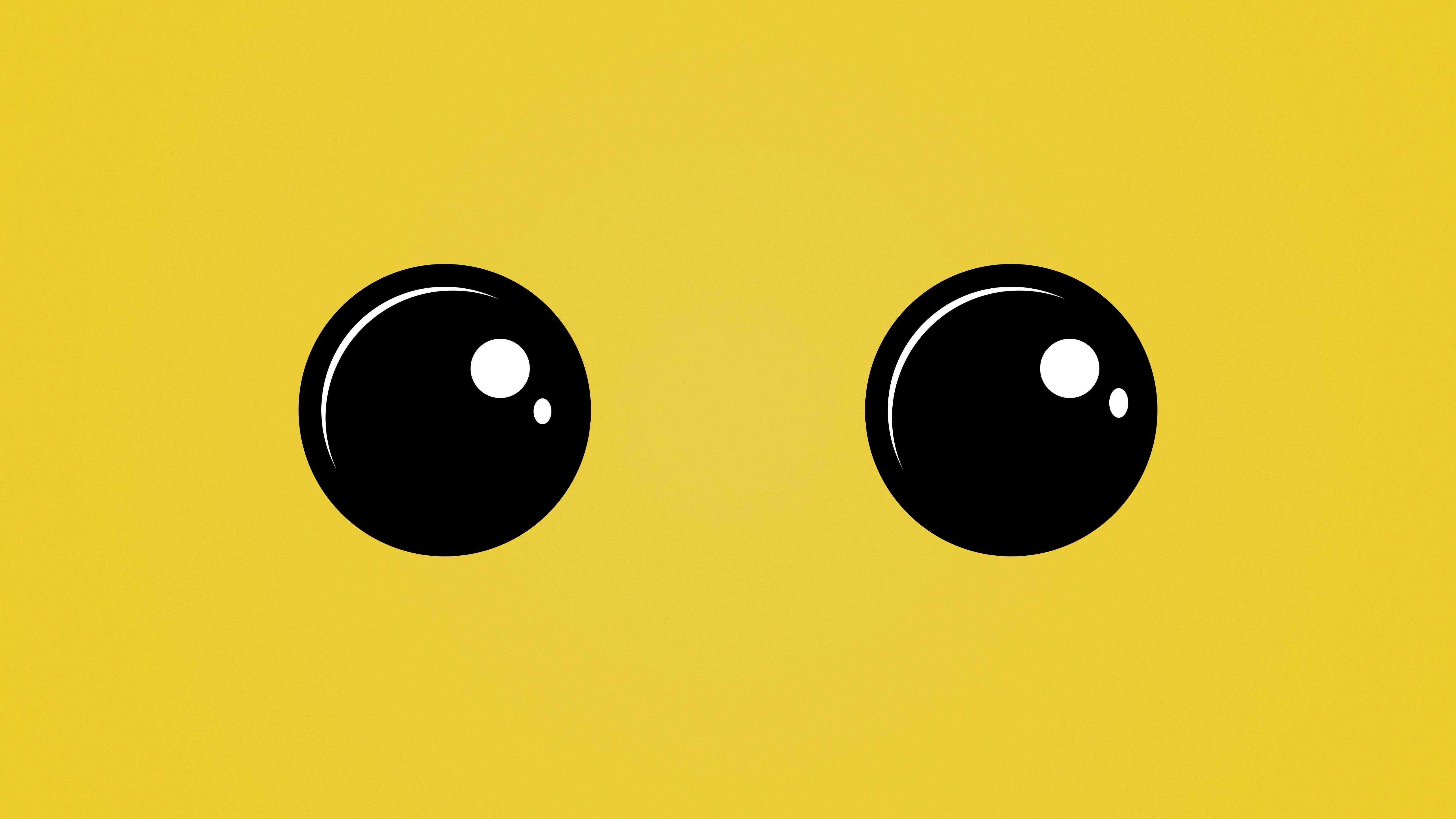 Description: A yellow background with two black eyes and a yellow background with a black one on the left side of the image.