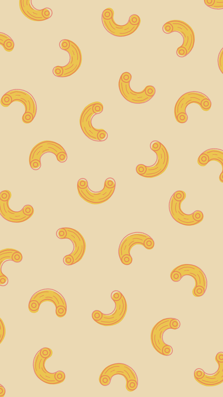 Description: A yellow and orange pattern with swirls on a beige background.