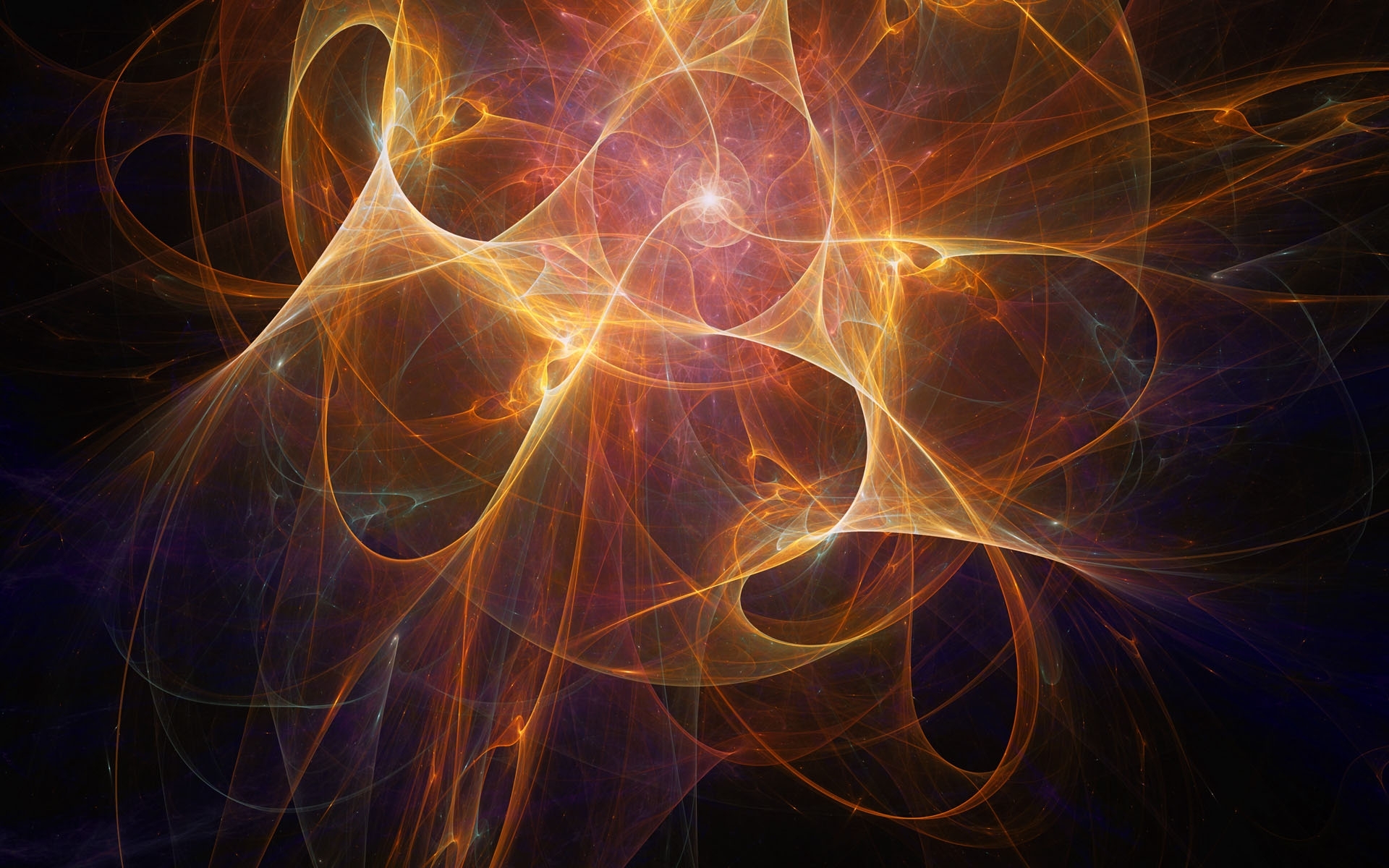 Description: A computer generated image of a yellow and orange swirl on a black background with a blue background and a white center.