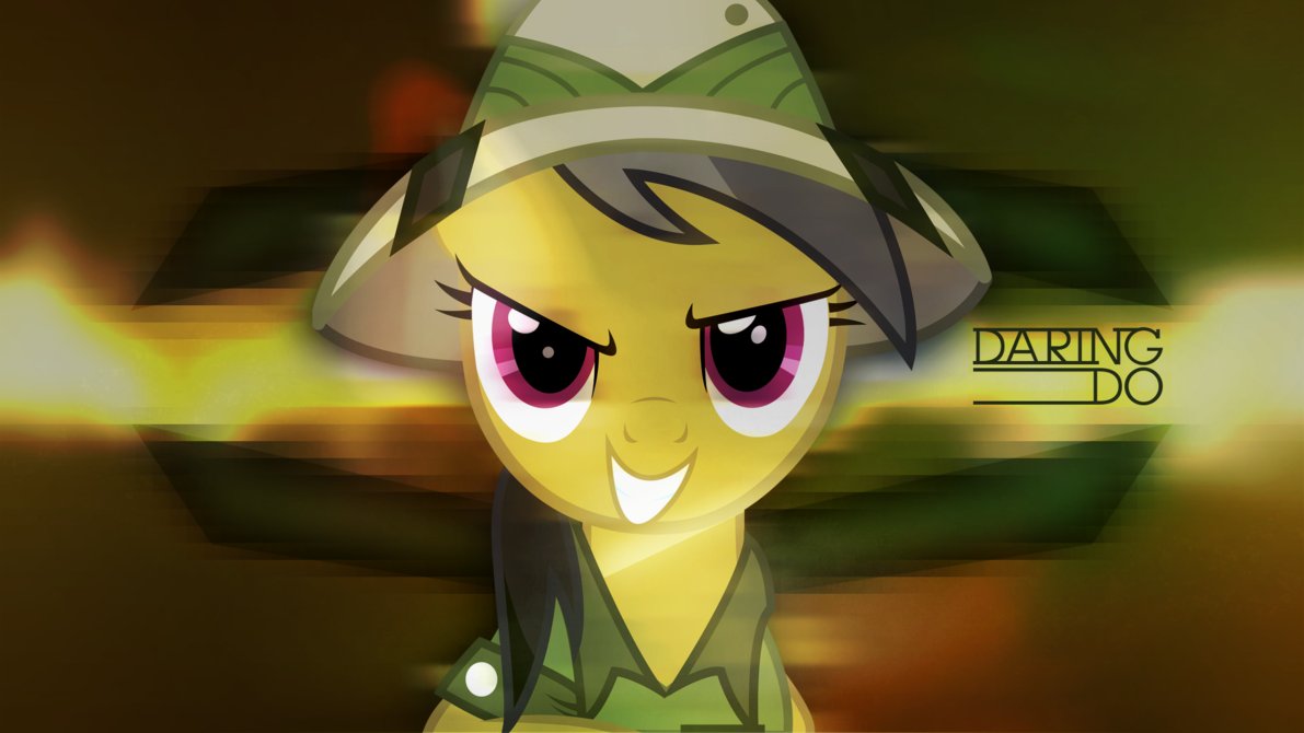 Description: A cartoon picture of a yellow pony with a hat on it's head and a green jacket on.