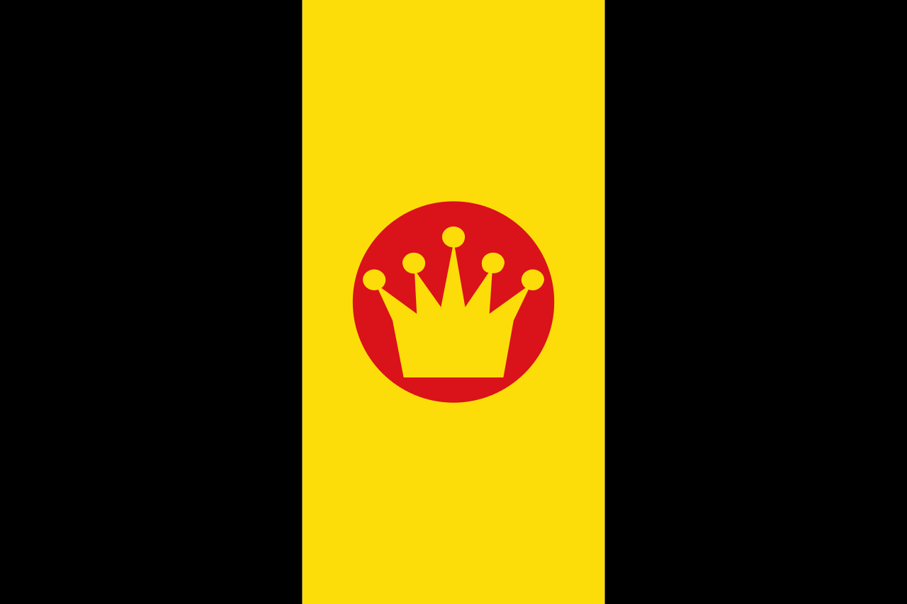 Description: A yellow and red sign with a crown on it's side and a red circle with a crown on it.