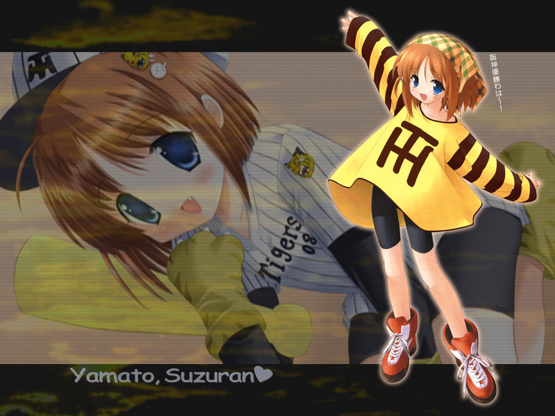 Description: A girl in a yellow shirt and a girl in a black and white shirt and a hat and a baseball cap.