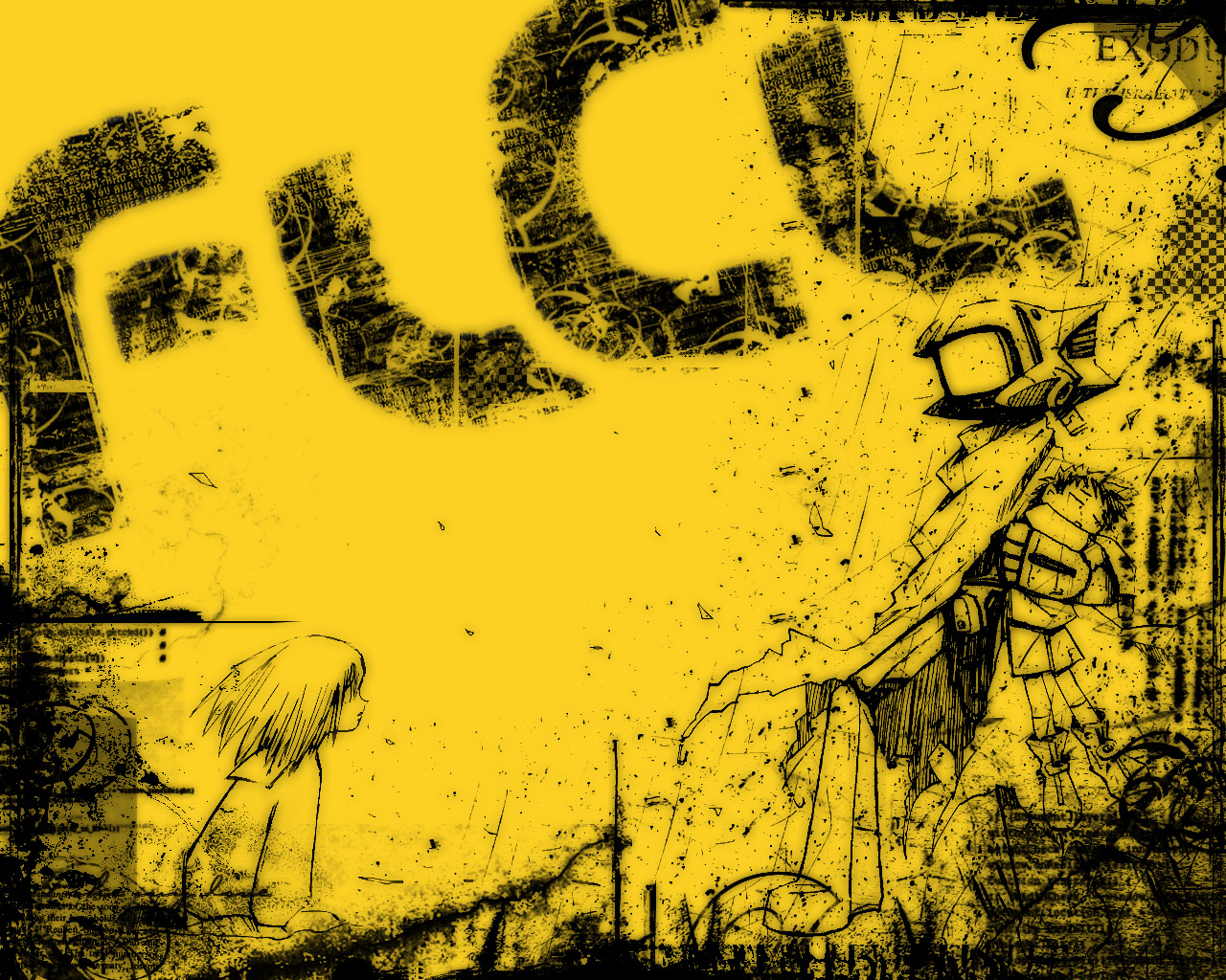 Description: A yellow and black picture of a person with a hat and a yellow background with the word flick written in it.