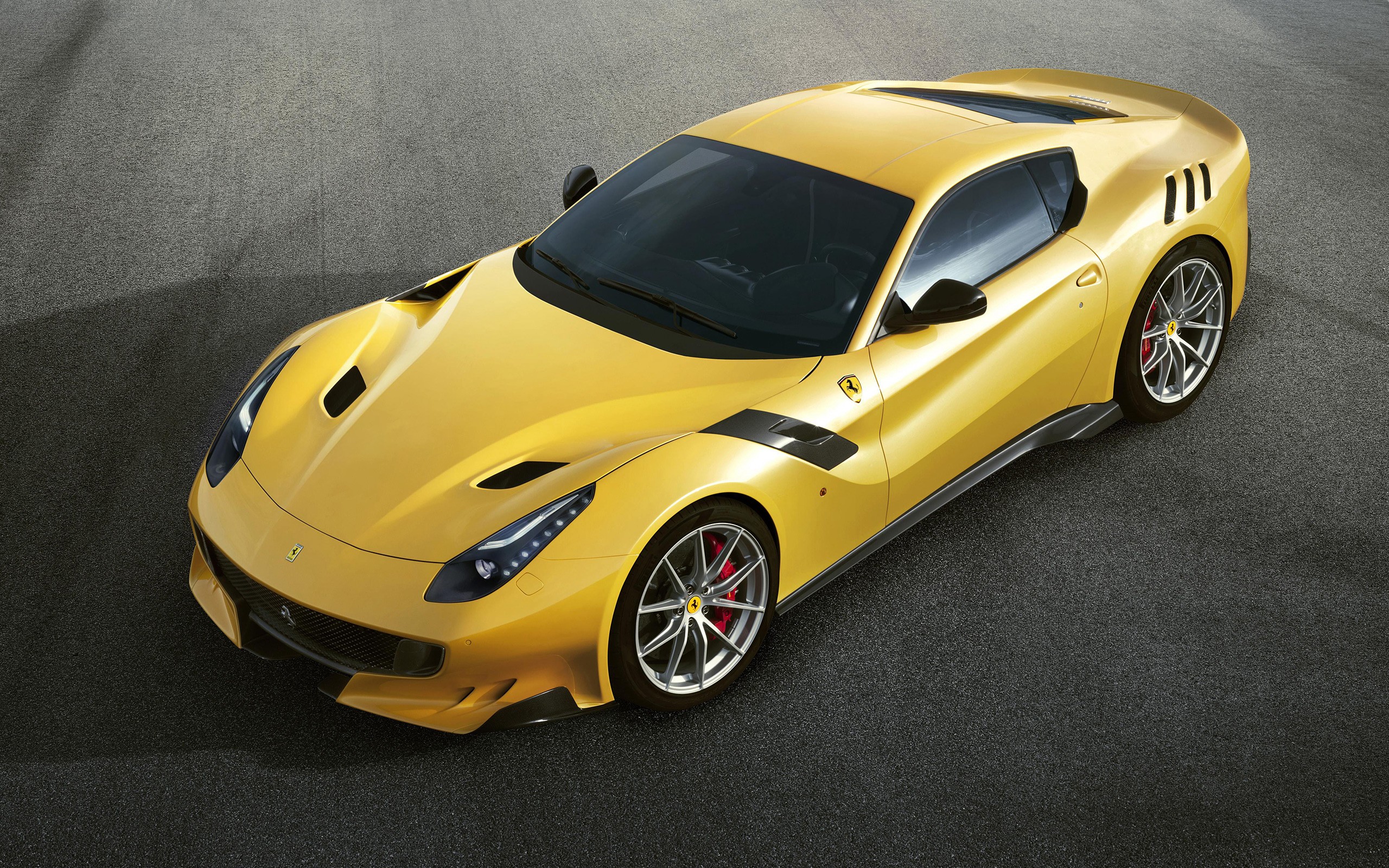 Description: A yellow sports car driving on a race track with a black stripe on the side of the car and a white stripe on the front of the car.